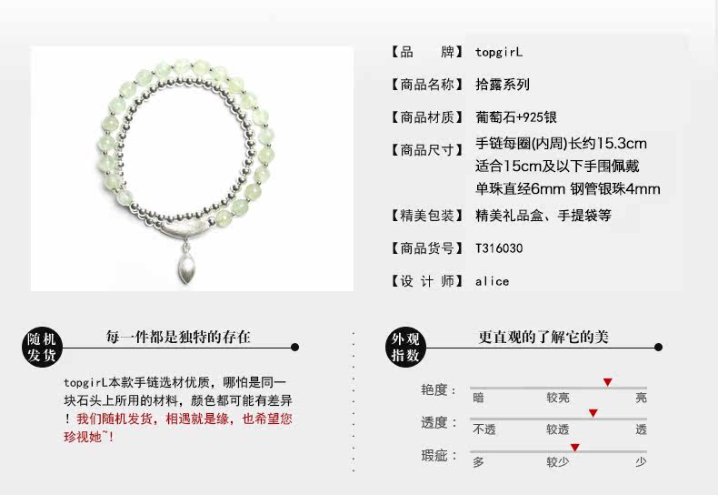 天然葡萄石水晶手链多圈女韩版时尚925银珠手串 闺蜜礼物