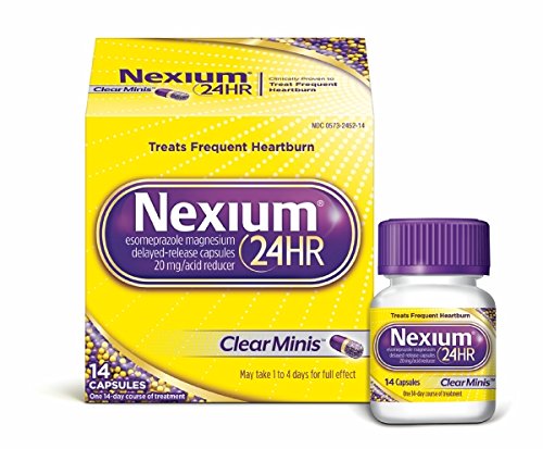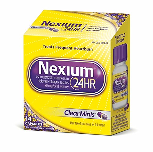 Get 24-hour relief from frequent heartburn with Nexium 24HR ClearMinis. It provides the same complete protection (3) from frequent heartburn in a potent little pill. Nexium 24HR ClearMinis work by blocking acid directly at the source, giving you 24 hours of protection (4) from frequent heartburn. Just one pill a day provides all-day, all-night protection (4) from frequent heartburn. Nexium 24HR is the #1 Selling OTC frequent heartburn brand (2).