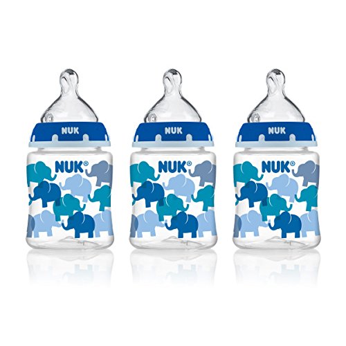 NUK 14059 Elephants Baby Bottle with Perfect Fit Nipple, Slow Flow, 5 Ounces, 3 Pack
