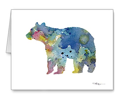 -. Feature : "Brown Bear" artwork by watercolor artist DJ Rogers. / Note card size is 4.25 x 5.5 inches / Matching white envelopes included. / Note cards are blank inside for your personal message. / Suitable for framing.