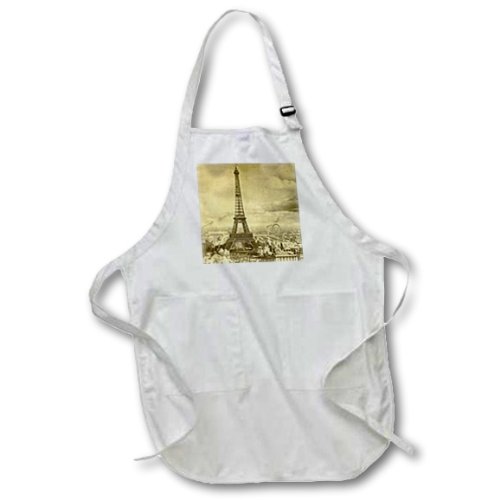 3dRose apr_6795_4 Eiffel Tower Paris France 1889 Sepia Tone-Full Length Apron, 22 by 30-Inch, Black
