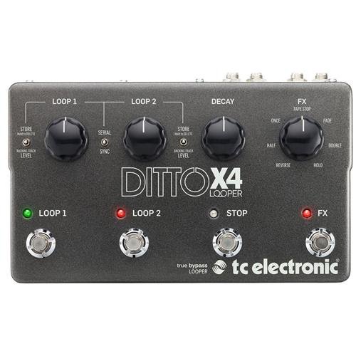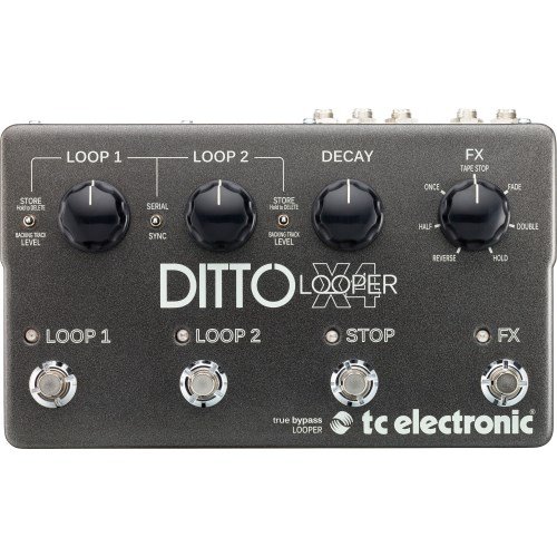 Studio : TC Electronic Publisher : TC Electronic Binding : Electronics Product Description Adding to TC Electronics popular range of looper pedals, Ditto X4 Looper is the ultimate creative tool for everyone who’s serious about looping. Ditto X4 Looper takes everything that was great about the original Ditto Looper, the ease of use and the pristine sound quality, and adds a plethora of amazing features that’ll open new creative doors for every musician out there. The dual loop tracks, two loop modes, loop decay and 7 loop FX make sure that there’ll never be a shortage on creative ideas, while MIDI Sync and Stereo I/O make it perfect for live performances. There’s no doubt that Ditto X4 Looper will quickly become the canvas for a multitude of future sonic masterpieces. Ditto X4 Looper also comes supplied with a USB cable for import and export of loops, and its own 9V DC power supply. 0