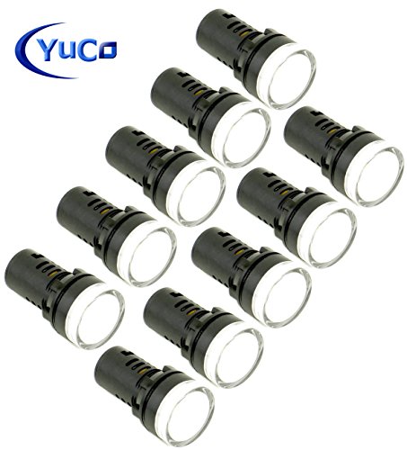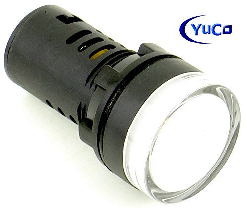 Product Description Box of 10 YuCo YC-22W-6 European standard TUV CE listed 22mm LED panel mount indicator lamp, white 12V AC/DC. Low-cost robust IEC 22mm integrated LED pilot-light for general application. 0