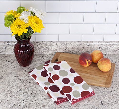 Ritz Royale Collection 100% Polyester Microfiber, Multi-Purpose, Polka Dot Print Kitchen Towel Set, 25" x 16", 2-Pack, Crimson Red