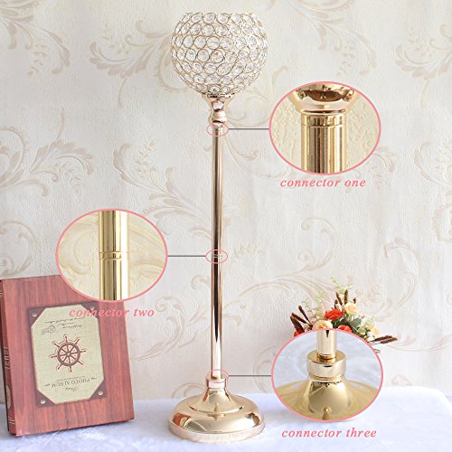 VINCIGANT Gold Candle Holders Centerpieces Floor Standing Candelabra Decorative Vases Candlesticks Crystal for Home Wedding Party Decorations 70cm Tall