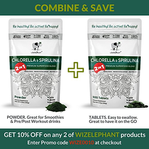 ✱ NATURAL SOURCE OF VITAMINS, MINERALS & AMINO ACIDS - 2 IN 1 Chlorella and Spirulina BLEND contains more than 100 NUTRIENTS needed for your body to be HEALTHY! Ultra-Rich in IRON, Beta-Carotene and PROTEIN with all essential AMINO ACIDS. Unique combination of NUCLEIC ACIDS (DNA&RNA), CHLOROPHYLL and CHLORELLA GROWTH FACTOR makes this BLEND much more nutritious than just Spirulina on its own.