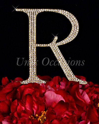Unik Occasions Collection Crystal Rhinestone Wedding Cake Topper, Large, Letter R, Gold