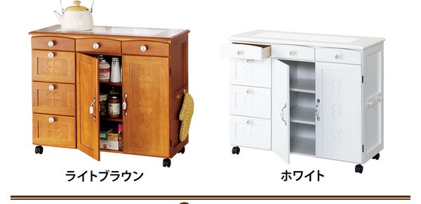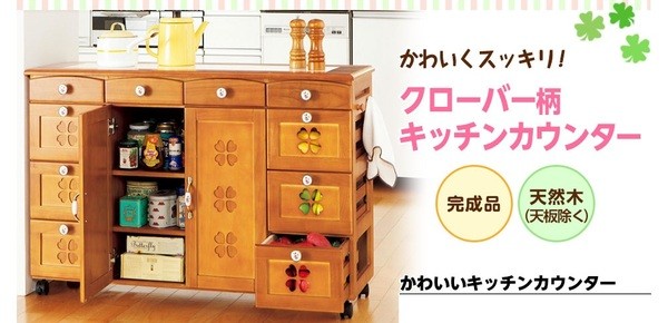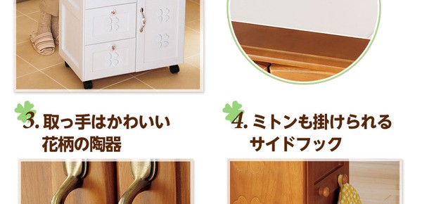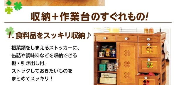 ・幅111cmタイプは、かわいいクローバーの窓がついた引き出し付。通気性がよく、根菜類の収納にぴったりです。