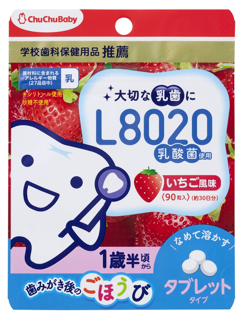 ●舐めて溶かすだけのL8020乳酸菌入タブレット(いちご風味)です。