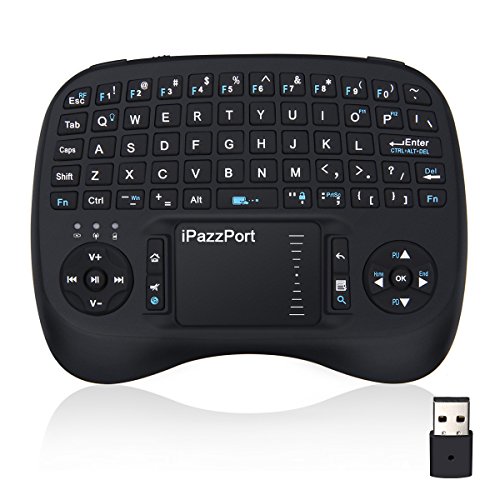 -. Feature : ❖Plug and Play: Easy to use, just connect the included USB dongle to your device, and then you can free to control the mini keyboard; Press Fn+Q to turn on backlit function, freely to control the keyboard even at night; / ❖Smart Touchpad Mouse: Built-in high sensitive smart touchpad with 360-degree flip design, no extra mouse needed; the touchpad is designed below the keys which is Ergonomical and more convenient to control; / ❖Full QWERTY Keyboard: Full QWERTY Keyboard, wireless keyboard with touchpad supporting multi-touch function, mouse left and right buttons, easy to type and copy/paste; / ❖Energy saving: Auto sleep and auto wake mode; With built-in rechargeable li-ion battery, the keyboard can be charged with the included USB cable; / ❖Widely Used: Wireless keyboard is for home entertainment, multi-media education, training, conference, presentation by connecting to your PC, Laptop, Projector, Raspberry Pi, Google Android TV Box.