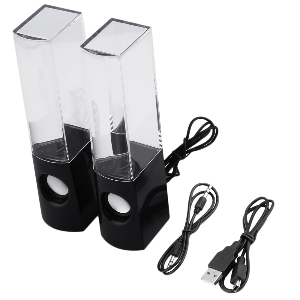 | Features: 100%Brand New Dancing Water Speakers LED Music Fountain Light Don't just hear your music see your music! You can connect the speakers easily to your PC Smartphone including iPhone or any other device with an 3.5mm audio output. There's no need for extra batteries you just have to use the USB power cable to create a stunning visual display of both water and light. The generated water fountains dance in sync to every different beat and thanks to the four different vivid colors you will see your tunes come alive. You will love them and so will your friends and family. Suitable for PC Mac MP3 Players Mobile Phones inc. iPhone !#!amp!*! Tablets Specifications: Speaker output power 3W x 2 (6W Total) Port type: USB A Male to mini 5 pin 3.5mm audio joint Wire length: 1.2m Working current: 280-600mah Operating voltage: DC5V-4.5V Color: Black Size: 50 x 55 x 225 mm Package size: 105 X 75 x 255 mm Net weight: 599g Package weight: 654g Package Included: 2 x Speakers 1 x USB Cable 1 x 3.5mm Audio Cable |