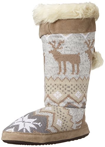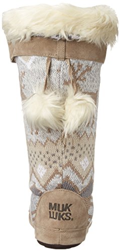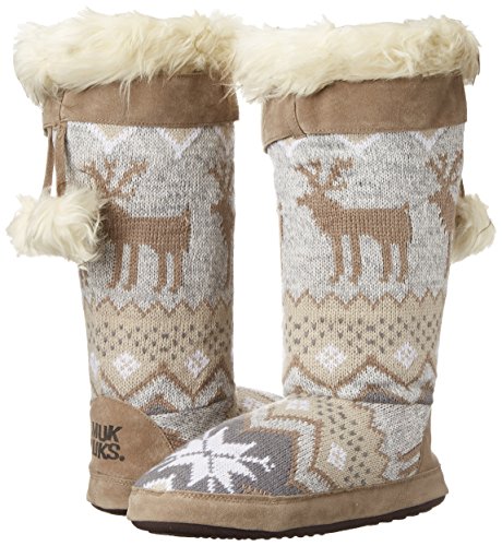 Dive into our traditional, holiday Winter White MUK LUKS Slippers Collection. This collection is made up of adorable winter themed slippers in creamy whites and taupe colors. The Jewel Slipper is made of 100% Acrylic and has a 100% Polyester Faux Fur Lining. Our Winnie Slipper features our nordic deer pattern with fur poms and a heel kick. This style is available in S (5-6), M (6.5-7.5), L (8-9), and XL (9.5-10.5). Spot clean, no bleach, and lay flat to dry. Made in China.