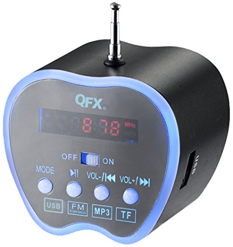 -. Title : QFX CS-82USBK Portable Multimedia Apple Speaker with FM Radio and USB/Micro SD Port - Black