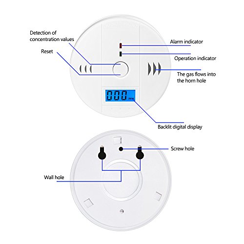 Carbon Monoxide Alarm, Battery Operated Smoke Alarm with 85db Alarm and Test Button for 24 Hour Protection, White(3AA battery not included)