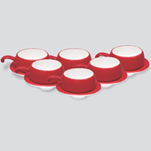 -. Feature : Indian Tableware Home decor Lilliput 6 Cups and 6 Saucers / Product Color: Red / Material: New Bone China / Capacity: Approx 150 ML / Wash Instructions: Hand Wash