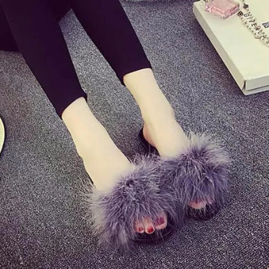 Model Number:Fluffy Faux Fur Flat Slipper