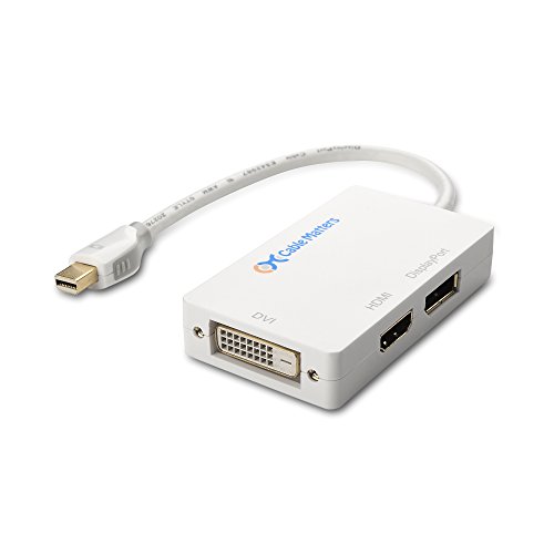 The Cable Matters Gold-Plated Mini DisplayPort to HDMI/DVI/DisplayPort adapter is an indispensable companion for your Mac, PC, and tablet equipped with Mini DisplayPort. Connect your laptop or tablet to an HDTV for high-definition video (1080p) and audio streaming or to an HD monitor/projector with this portable adapter and an HDMI/DVI/DisplayPort cable (sold separately). Low-profile connector with molded strain-relief design increases durability. Ergonomically designed easy-grip treads make plugging and unplugging a breeze.