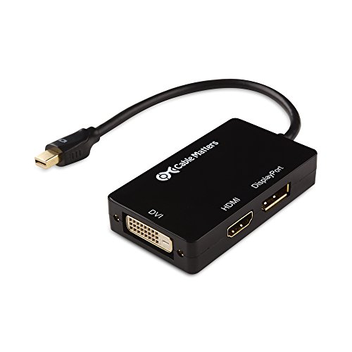 Cable Matters Mini DisplayPort (Thunderbolt™ 2 Port Compatible) to HDMI/DVI/DisplayPort Male to Female 3-in-1 Adapter in Black