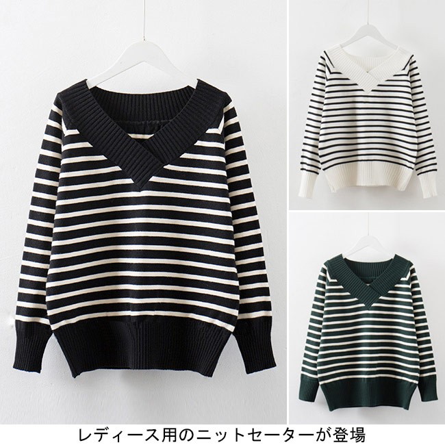 | 商品名 | レディース ニットセーター 長袖 ゆったり ボーダー柄 Vネック 女性用 トップス 着やせ マリン風 インナー 秋冬物 着まわし |