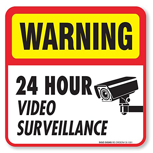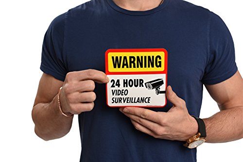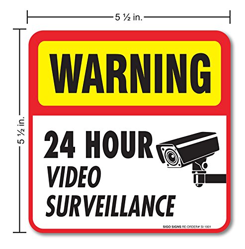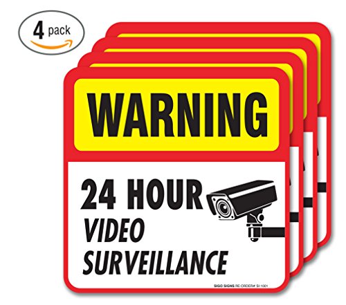 (4 Pack) 24 hour Video Surveillance Sign/Decal Self Adhesive " 5½ X 5½" 4 Mil Vinyl Decal — Indoor & Outdoor Use — UV Protected & Waterproof — Sleek, Rounded Corners