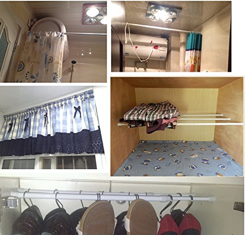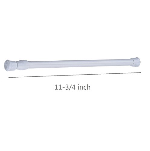 - Easy adjust the length, twist the rod to adjust the length you want; adjustable from 11-3/4" to 20", about 11-3/4" at shortest length, about 20" at longest length; The inner structure of rod with a spring, to keep enough tension, two ends with non-slip silicone, rub resistance, to prevent rod falling off.