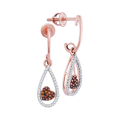 -. Title : 10kt Rose Gold Womens Round Red Color Enhanced Diamond Heart Dangle Earrings 1/5 Cttw