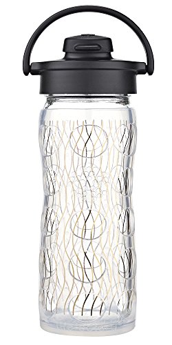 Lifefactory Water Bottle with Flip Cap & Silicone Sleeve, Gold Stripe, 16 oz.