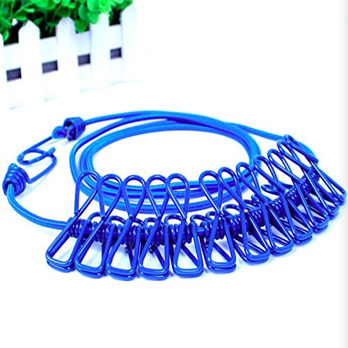 - The length of one clothesline is 72.9”, made up of a long bungee cord, the cord is expandable and the steel hooks allow you attach your almost anywhere. Each clothesline have 12 pcs of clothespins on it