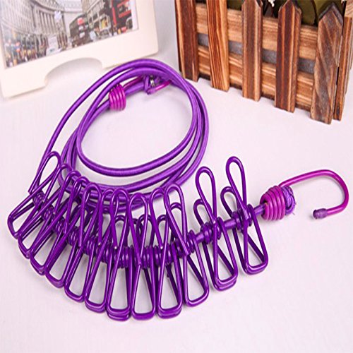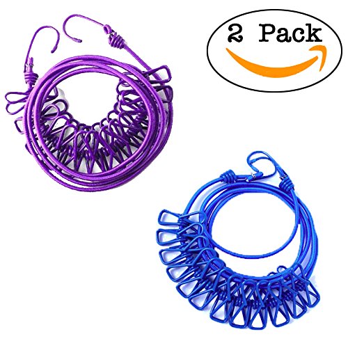 Clothesline Windproof Clothes Line For Outdoor And Indoor 12pcs Clothes Clips Travel Retractable Clothes Line 2 Packs (Blue and Purple) Washing Line Laundry Line