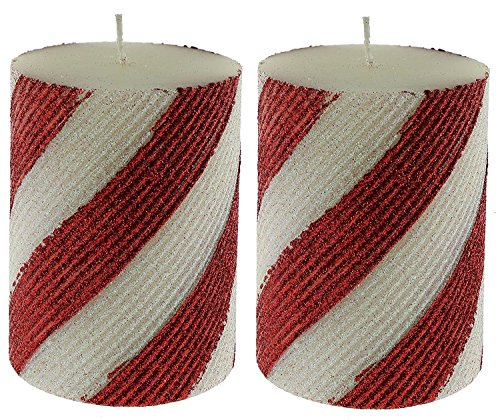 Jay Imports Bias Glitter Candy Cane Red And White Stripes 3" X 4" Pillar Candle, Set of 2
