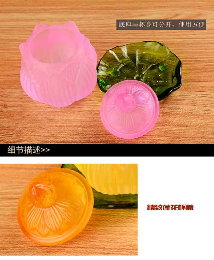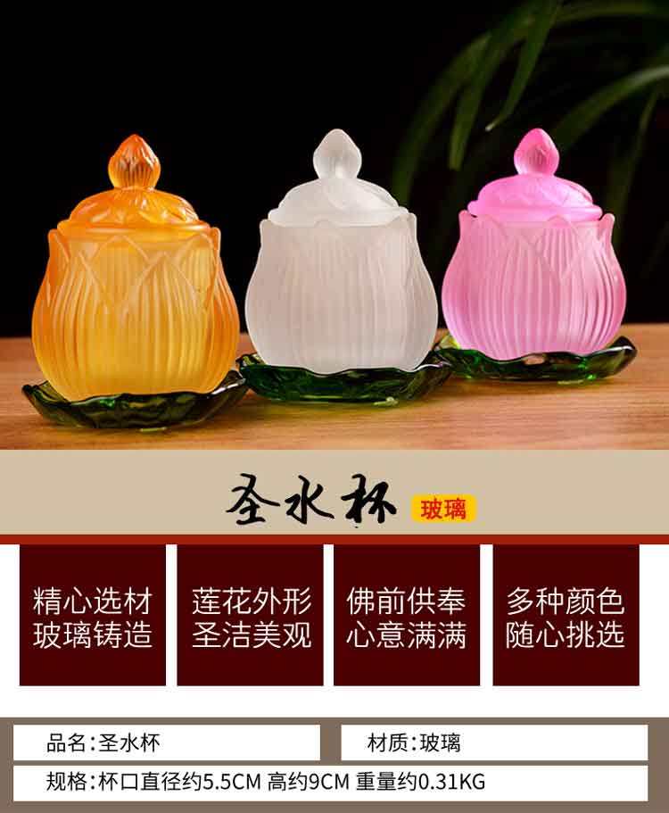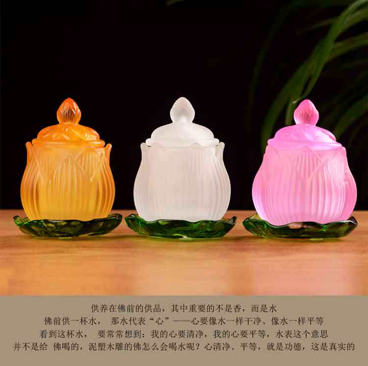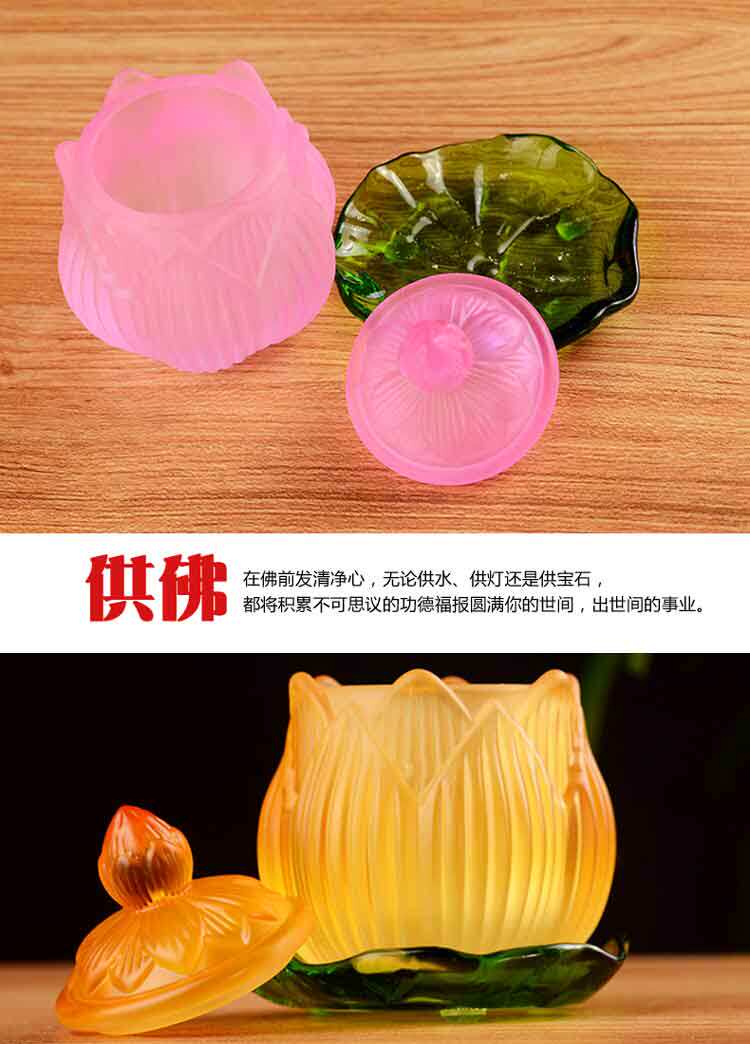 仿琉璃浮雕莲花圣水杯佛教用品净水贡杯佛前供具彩色供杯