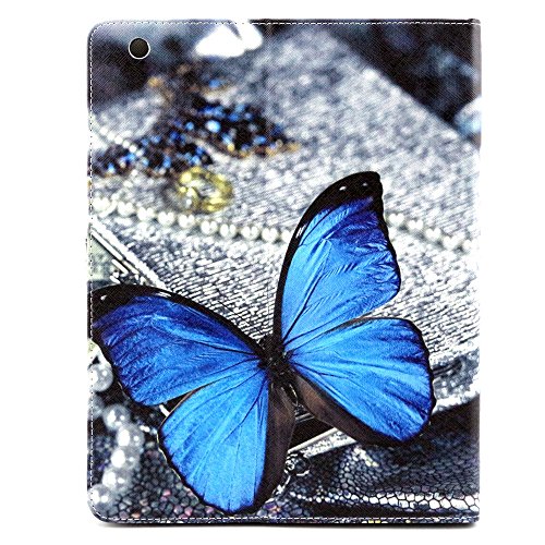 iPad 2/3/4 Case, Dteck(TM) Cartoon Cute Pattern PU Leather Flip Wallet Case with [Cards Slots&Money Holder] for Apple iPad 2/ iPad 3 / iPad 4 9.7 Inch (01 Blue Butterfly)