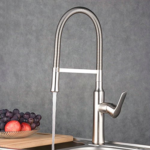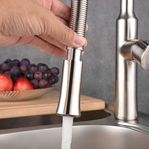 JiaYouJia Contemporary Single Hole 1-Handle Kitchen Faucet Pull-Down Spout in Brushed Nickel