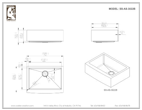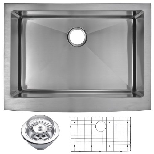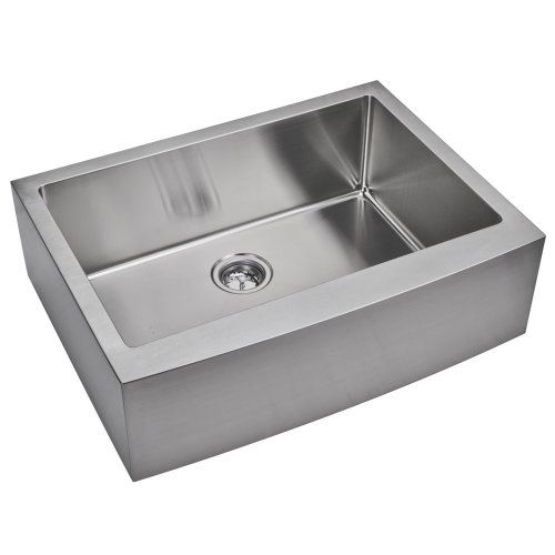 Water Creation SSSG-AS-3022B 30" X 22" 15 mm Corner Radius Single Bowl Stainless Steel Hand Made Apron Front Kitchen Sink with Drain and Strainer