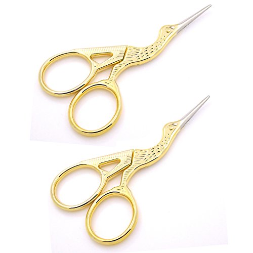 JINJIAN Classic Forged Stork Embroidery Scissors for Sewing Craft Art Work, 3-1/2", Gold Plated, Set of 2