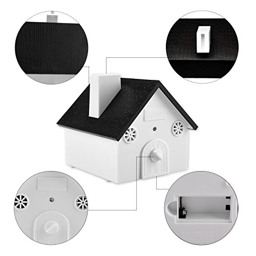 Studio : Go Plum Crazy, LLC Publisher : Go Plum Crazy, LLC Binding : Misc. Product Description SAFE: The ultrasonic frequency is not harmful to pets and completely inaudible to human ears. DISPLAY: Hang the Ultrasonic Dog Bark Control birdhouse on a tree, without ruining your decoration.Mount it on a fence or even a bird feeder. HIGH TECH: This anti barking control device has an internal microphone to pick up barking sounds within a 50-feet range and activate the unit. LONG LIFE Weatherproof durable it's the best outdoor bark silencer for anti bark control you could have! HOW IT WORKS: The unit is automatically activated by the sound of barking. When the device is within the range of a barking dog, the microphone will isolate and pick up the barking dog to emit an ultrasonic sound to silence the dog. DURABLE AND WEATHERPROOF: weight: 440g Power: 1 x 9V battery (not included) Effective Distance: activated at 15, 30 or 50 feet Product size: (L x W x H): 11.5 x 10.5 x 17cm 0