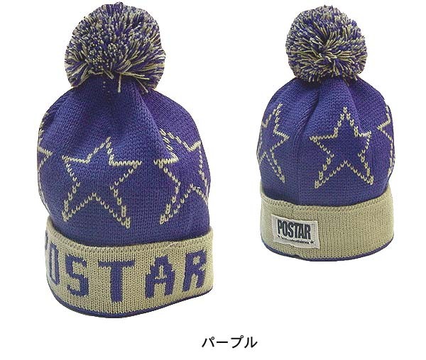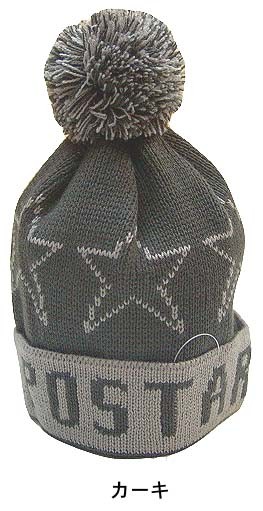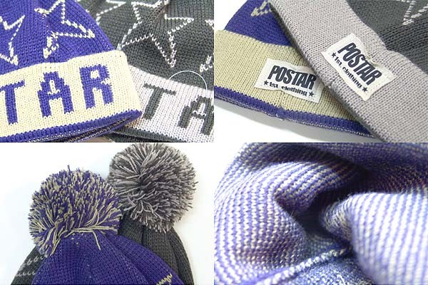 定番の形のニットキャップは、大きなスターとポスターのロゴが。