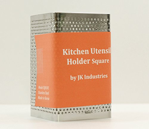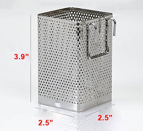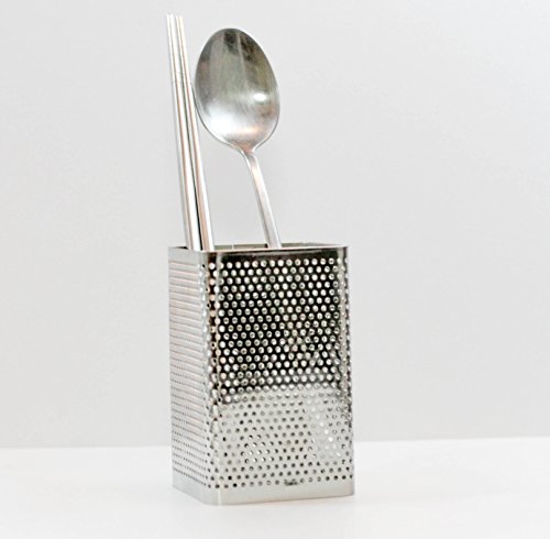 Kitchen Utensil Chopsticks Perforated Holder with Hooks - Stainless Steel - Dishwasher Safe - Small Square Caddy 2.5" X 3.9" X 2.5"