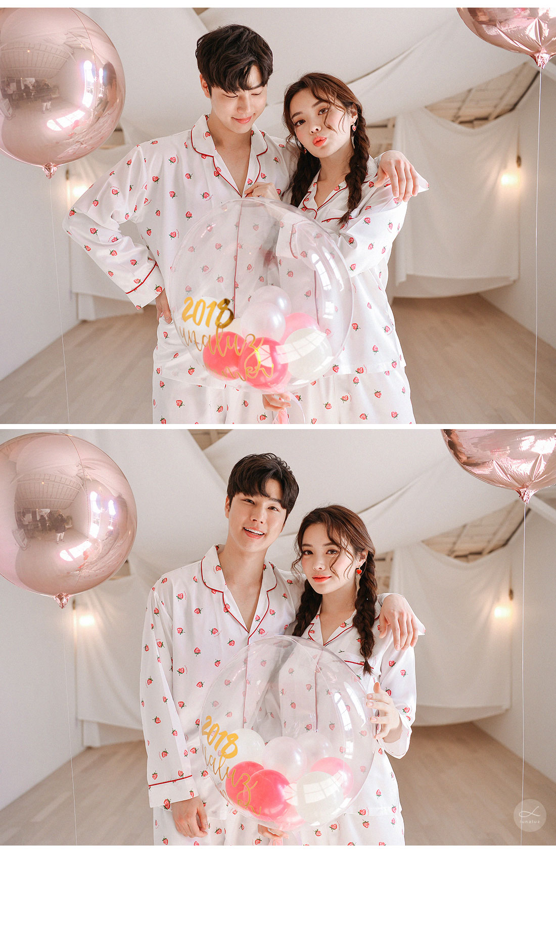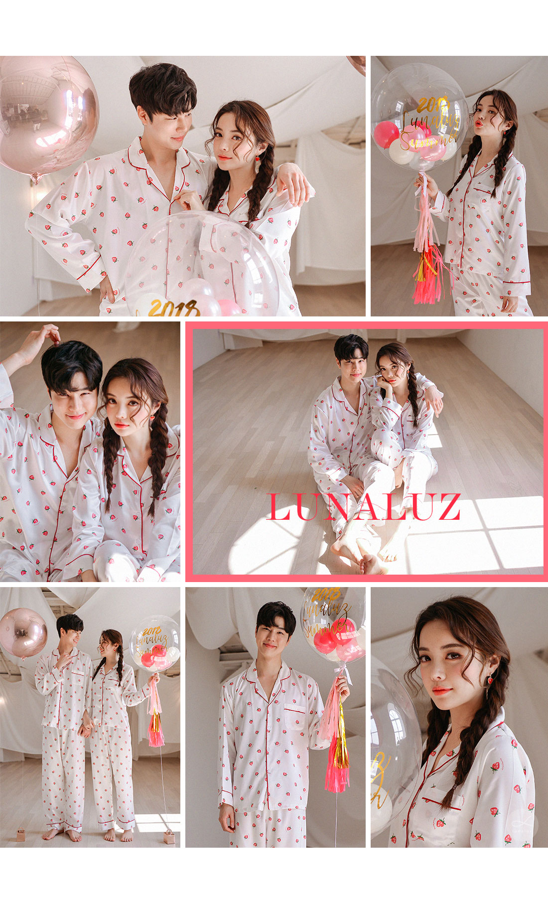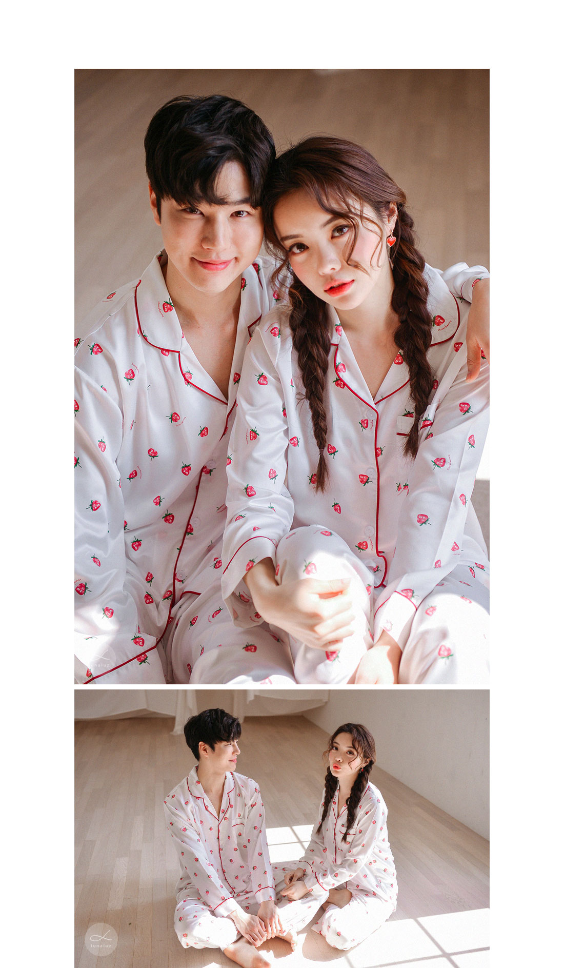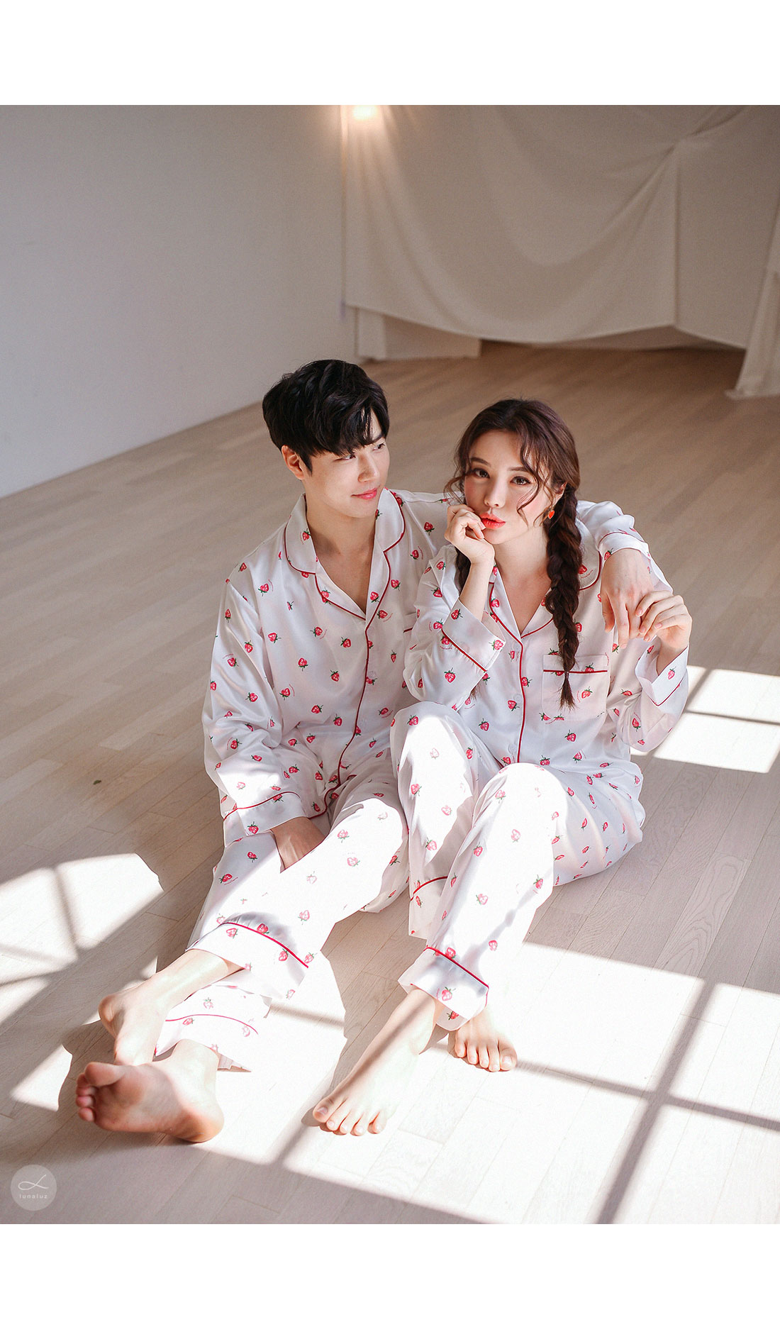 S/S시즌에 걸맞는 컬러감과 아기자기한 딸기, dty소재가 매력적인 커플잠옷! 매끄러우면서 고급스러운 광택이 흐르는 소재와 직접 그린듯한 딸기가 러블리한 무드를 내어주는 커플 잠옷입니다. 실키하게 떨어지는 부드러운 광택, 터칭감, 실루엣까지 정말 예뻐요. 일반 샤무즈 원단과는 달리 DTY 원사로 제작한 소재라 훨씬 더 고급스러우며 부드러운 광택이 도는 잠옷입니다. 필링이 발생하지 않고 타 원단에 비해 세탁과 내구성 면에서도 좋습니다. 무엇보다 고급스럽고 네츄럴한 광택, 탄탄함이 잘 어우러진 프리미엄 잠옷이라고 볼 수 있어요. 피부가 예민하신 분들도 착용하기 좋은 부드러운 촉감이며 바디에 예쁘게 떨어지는 패턴으로 매력적으로 연출하실 수 있습니다. 여러번 bt 수정을 거친 예쁜 색감의 잠옷으로 강력 추천해드리고 싶습니다. 소프트한 아이보리컬러 1가지로 환하고 화사해 보이는 파자마세트입니다~! DETAIL 바디에 예쁘게 떨어지는 깔끔한 파자마셔츠 스타일, 포켓 파이핑 카라 디자인으로 매력적으로 연출하실 수 있습니다. 소재와 컬러, 패턴, 봉제까지 까다롭게 제작한 잠옷으로 입었을 때 더 만족해 하실 거에요. 카라의 끝 부분과 포켓, 소매와 팬츠의 하단에 파이핑을 둘러 봉제해 포인트를 주었습니다. 100%국내 제작으로 원단, 디자인, 봉제의 퀄리티가 높습니다. SIZE 남성 잠옷은 100size 기준으로 제작한 free사이즈 입니다. 여성 잠옷은 44반size~55반size까지 착용가능한 free 사이즈입니다.