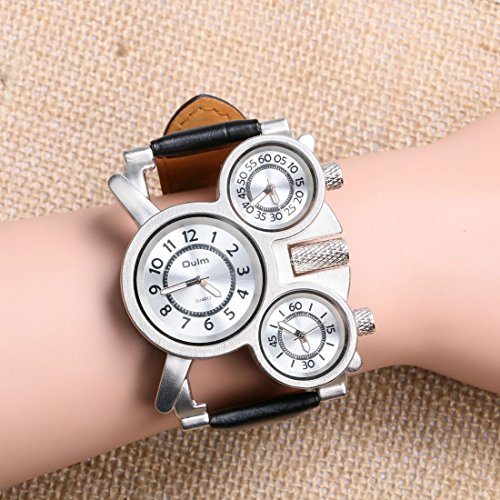Oulm Three Time Display Quartz Mens Military Army Sport Wrist Watch White