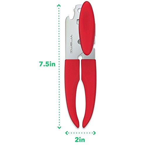 Manual Can Opener - OHLIFE Smooth Edge Stainless Steel Red Can Opener Extra Sharp Beer Can Bottle Opener with Ergonomic Right and Left Handed Grip - Dishwasher Safe