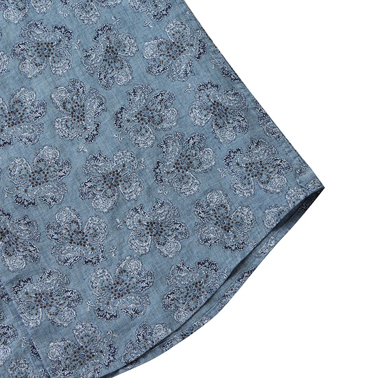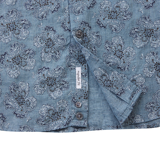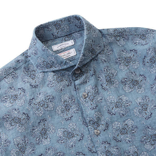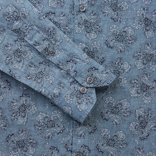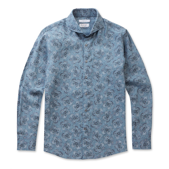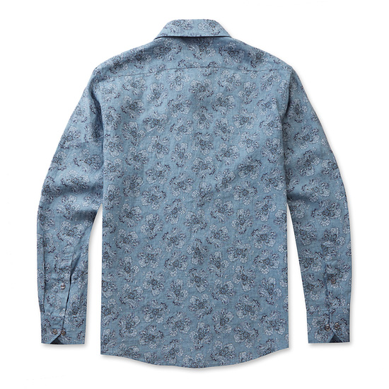 - 엔틱한 플라워 패턴을 적용한 남성 린넨 셔츠.