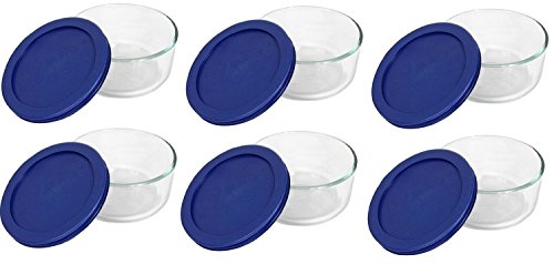Pyrex Storage 7-cup Round Dish with Dark Blue Plastic Cover, Clear