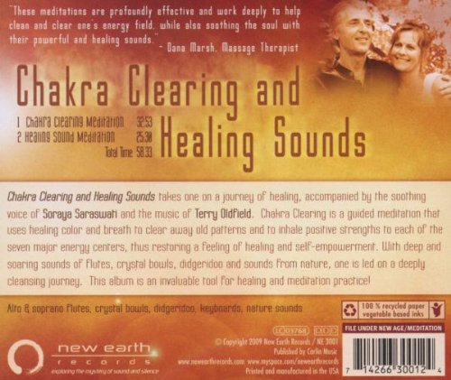 ReleaseDate : 2009-05-12 Studio : New Earth Records Publisher : New Earth Records Binding : Audio CD Product Description Chakra Clearing and Healing Sounds takes listeners on a journey of healing accompanied by the soothing voice of Soraya Saraswati and the music of Terry Oldfield. Chakra Clearing is a guided meditation that uses healing color and breath to clear away old patterns and to inhale positive strengths of each of the seven major energy centers, thus restoring a feeling of healing and self-empowerment. 0
