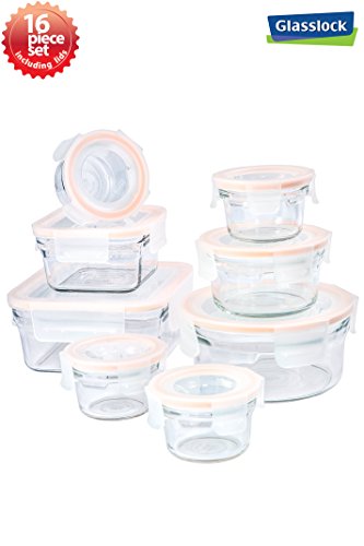 Tempered Glasslock Advanced Rim (Easy Open & Lock) Technology Storage Containers 16pc Square and Round set Microwave & Oven Safe Airtight Anti Spill Proof