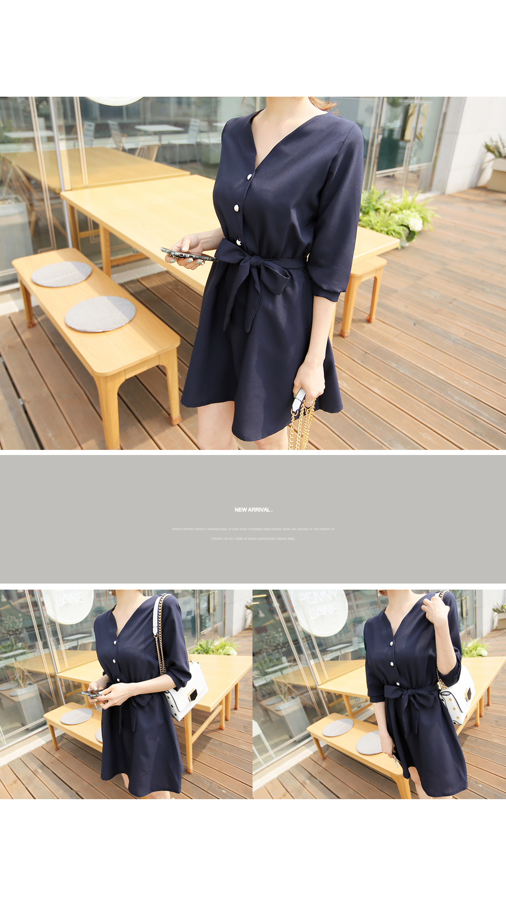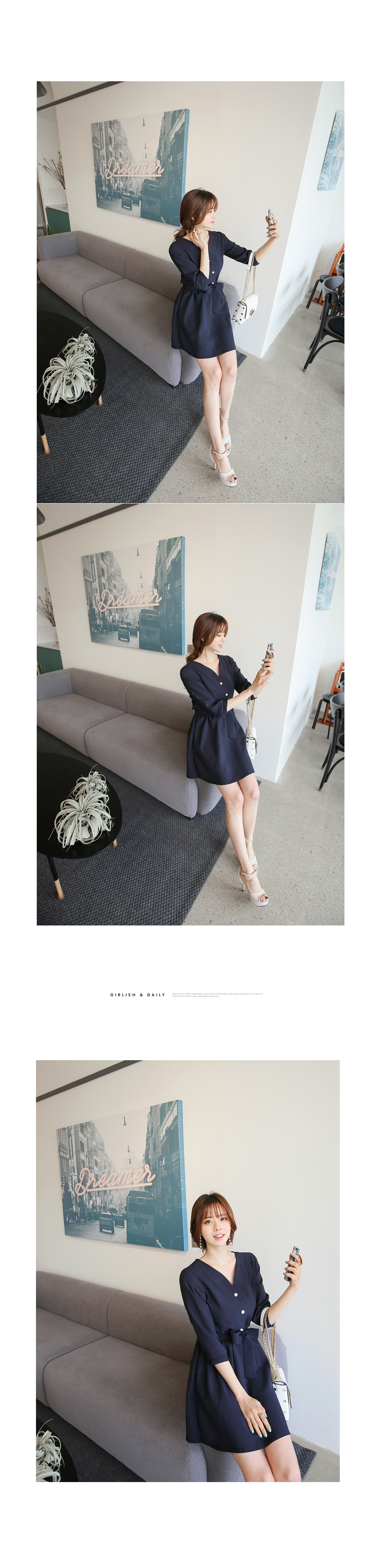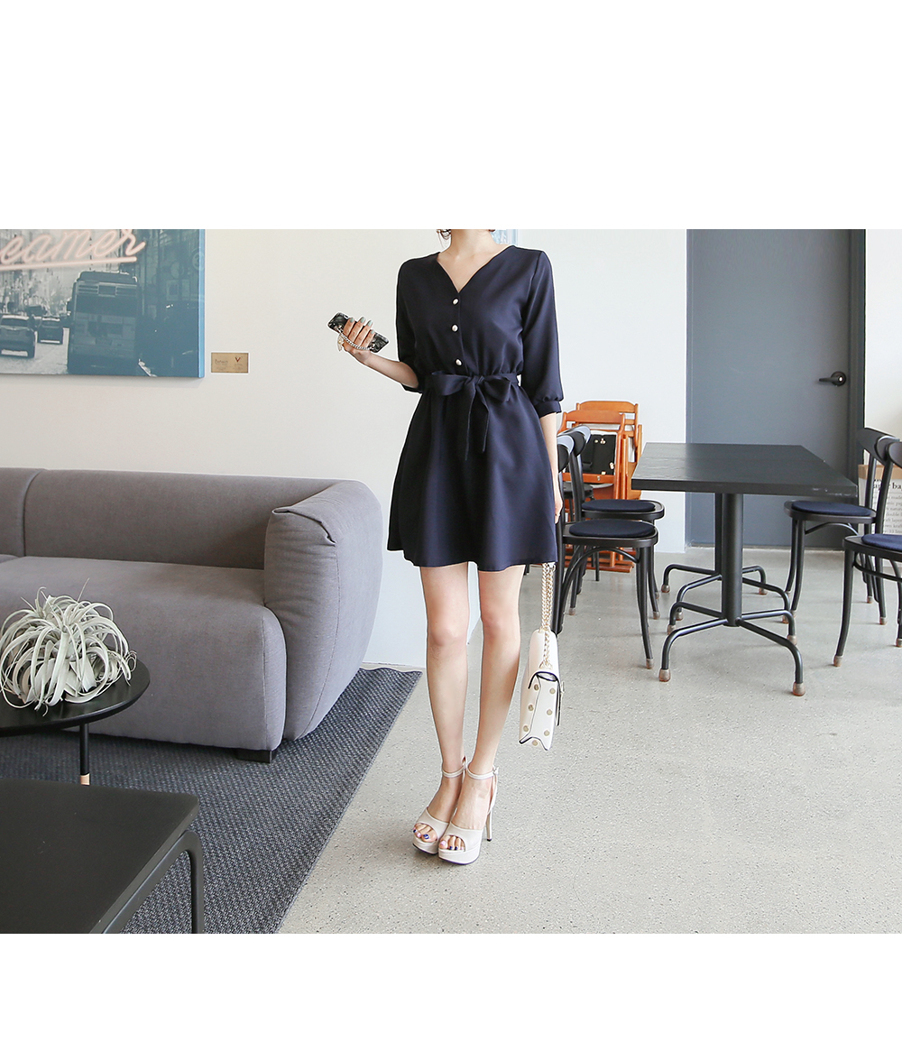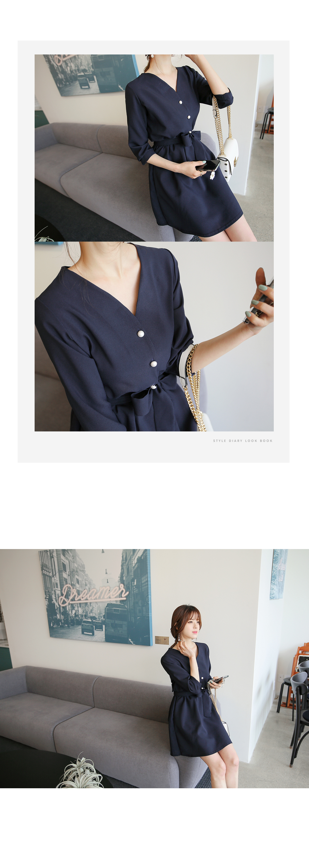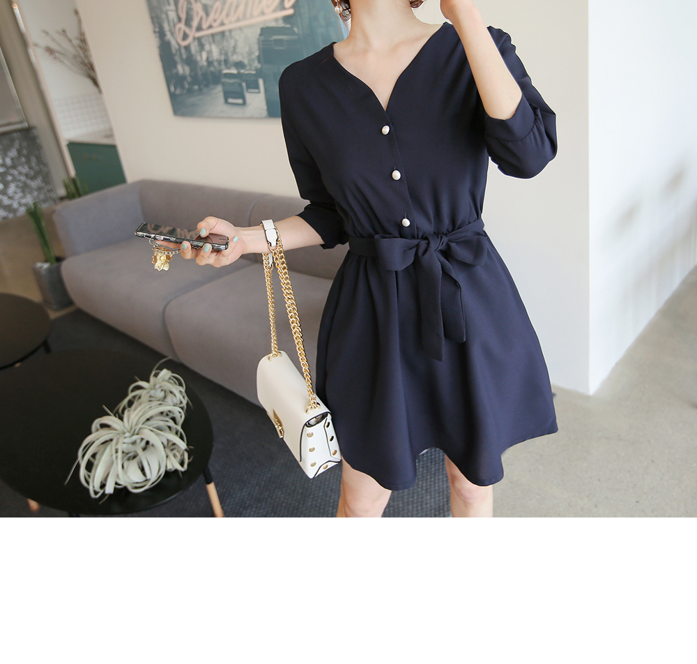 포인트룩으로 시선을 사로잡는 진주단추 원피스 소개해 드려요.