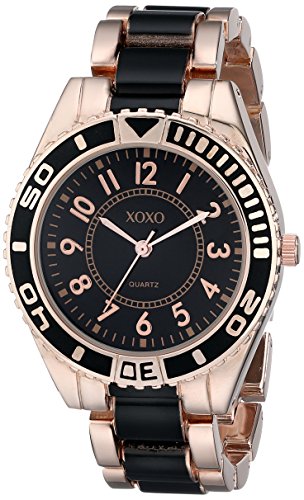 - Modern black meets vintage rose gold tones in this XOXO bracelet watch, making it the ideal timepiece for the woman who appreciates both the contemporary and the classic.