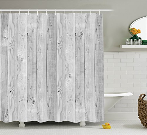 Ambesonne Grey Decor Collection, Picture of Smooth Oak Wood Texture in Old Fashion Retro Style Horizontal Nature Design Home Print, Polyester Fabric Bathroom Shower Curtain, 75 Inches Long, Gray