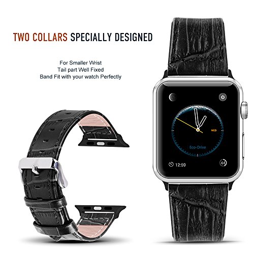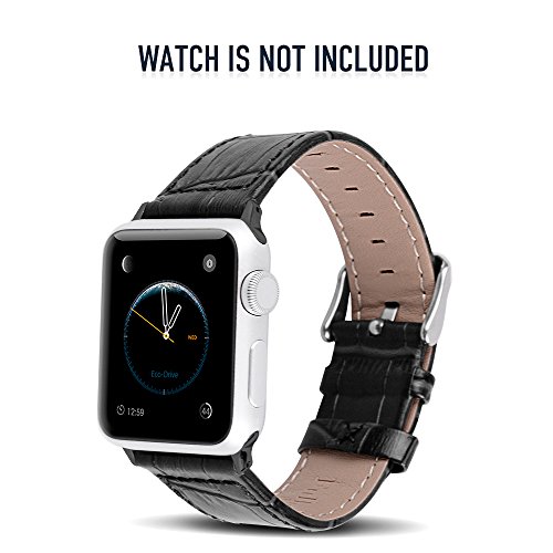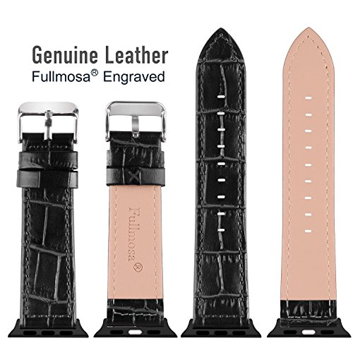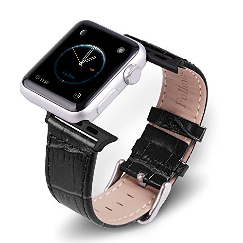 Apple Watch Bands 38mm, Fullmosa Jan Series Bamboo Texture Calf Leather Replacement Band/Strap with Stainless Steel Clasp for Apple iWatch Series 1 & 2 Sport and Edition Versions 2015 2016,Black