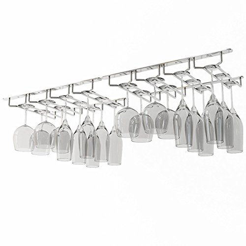 JMiles Under Cabinet Hanging Stemware Rack Hold Up To 24 Wine Glasses (Chrome)